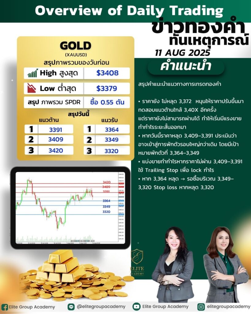 • แบ่งขายทำกำไรหากราคาไม่ผ่าน 3,409–3,391 ใช้ Trailing Stop เพื่อ lock กำไร