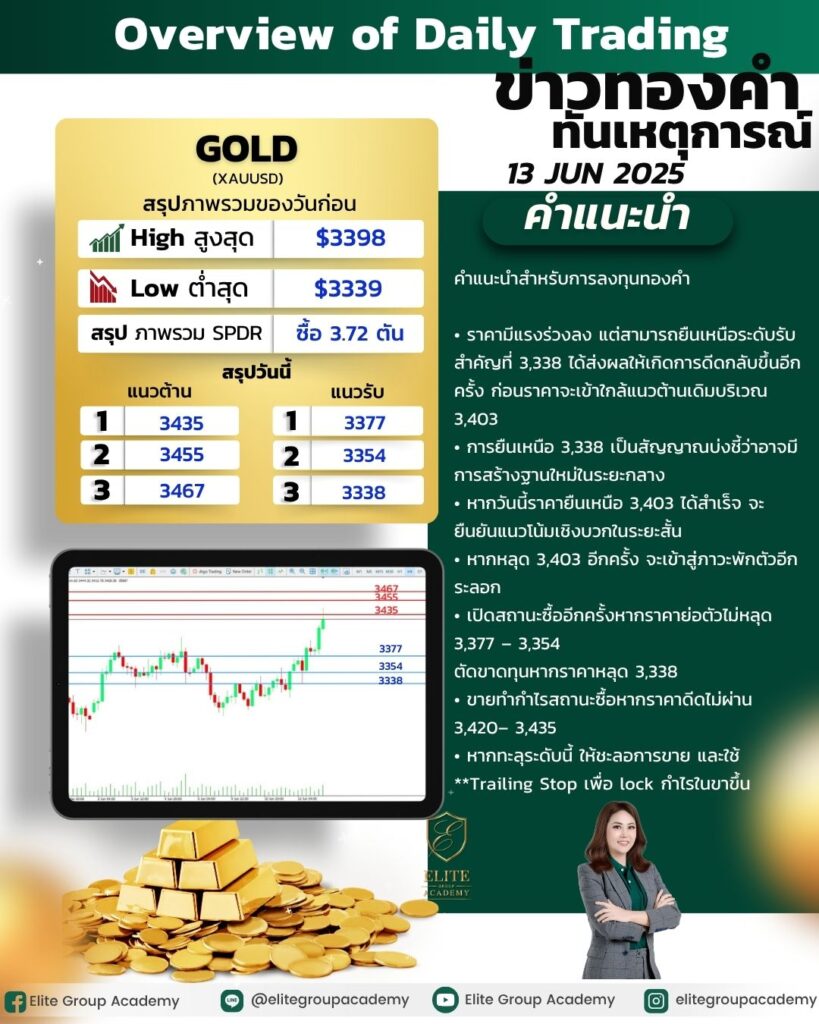 1. ราคาทองคำโลกปรับตัวขึ้น 31.12 ดอลลาร์ ปัจจัยหลักคือสถานการณ์ อิสราเอลเริ่มเปิดฉากโจมตีอิหร่าน ขณะที่ สหรัฐฯ ยืนยันไม่เข้าร่วมปฏิบัติการ ทำให้ตลาดยังคงกังวลต่อความเสี่ยงในตะวันออกกลาง