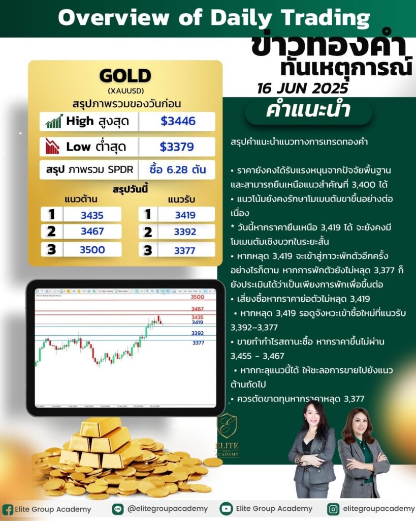• หากหลุด 3,419 รอดูจังหวะเข้าซื้อใหม่ที่แนวรับ 3,392–3,377