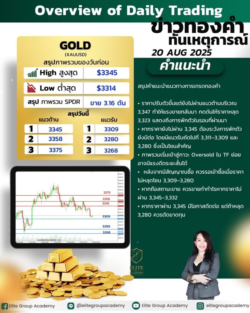 • หากราคายังไม่ผ่าน 3,345 ต้องระวังการพักตัวยังมีต่อ โดยมีแนวรับถัดไปที่ 3,311–3,309 และ 3,280 ซึ่งเป็นโซนสำคัญ