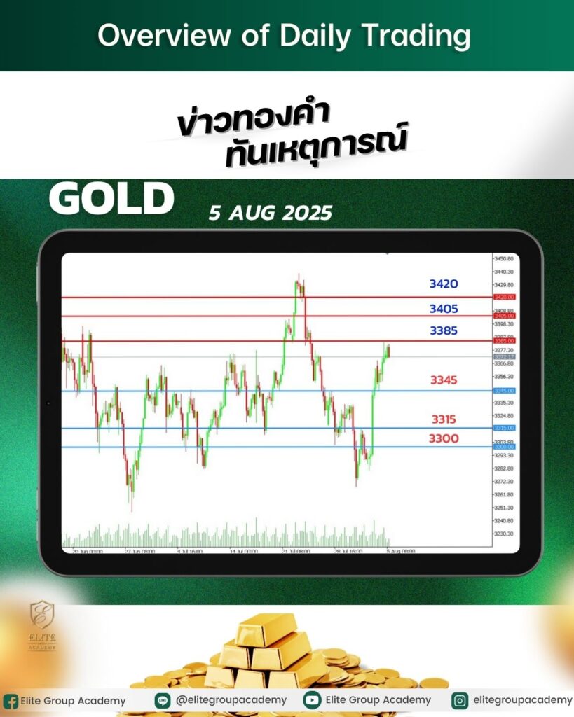• แนะนำเข้าซื้อหากย่อตัว ไม่หลุด 3,345–3,315 วาง Stop Loss หากหลุด 3,315