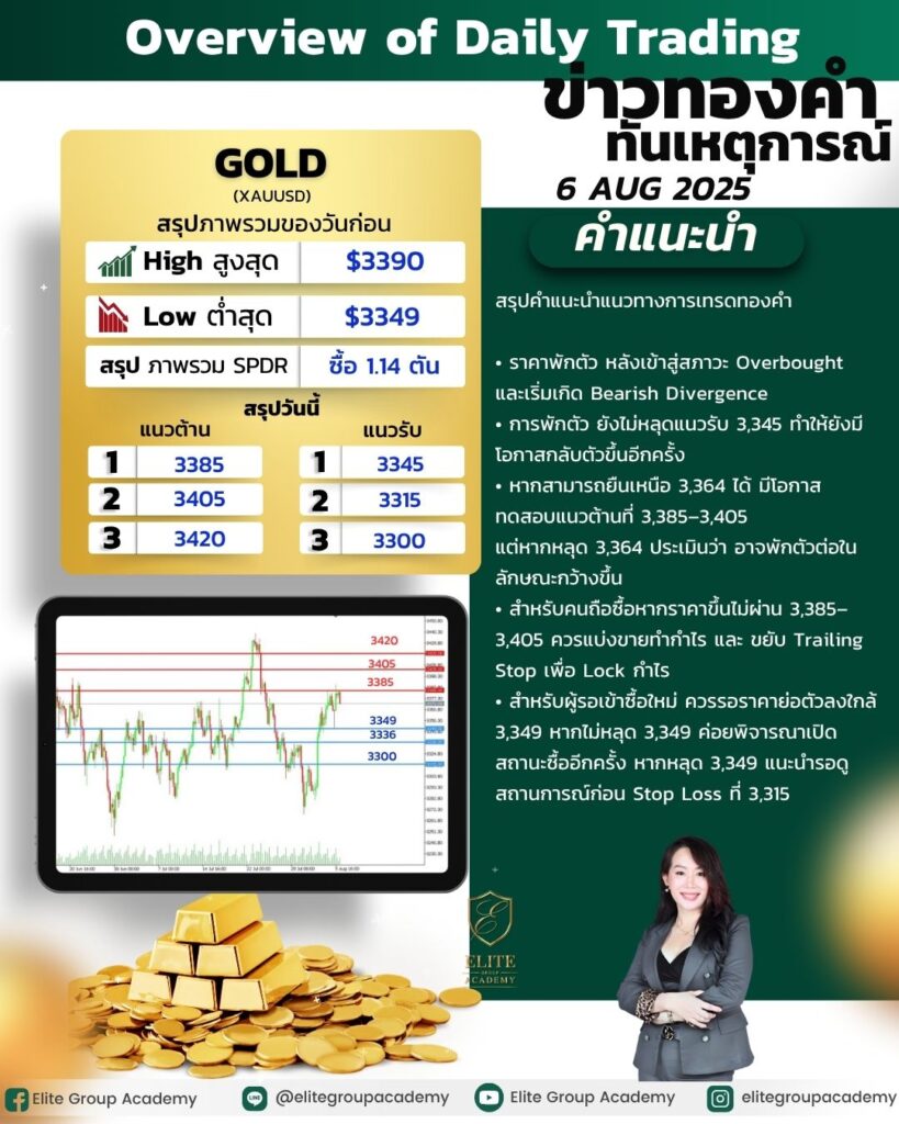 • สำหรับคนถือซื้อหากราคาขึ้นไม่ผ่าน 3,385–3,405 ควรแบ่งขายทำกำไร และ ขยับ Trailing Stop เพื่อ Lock กำไร